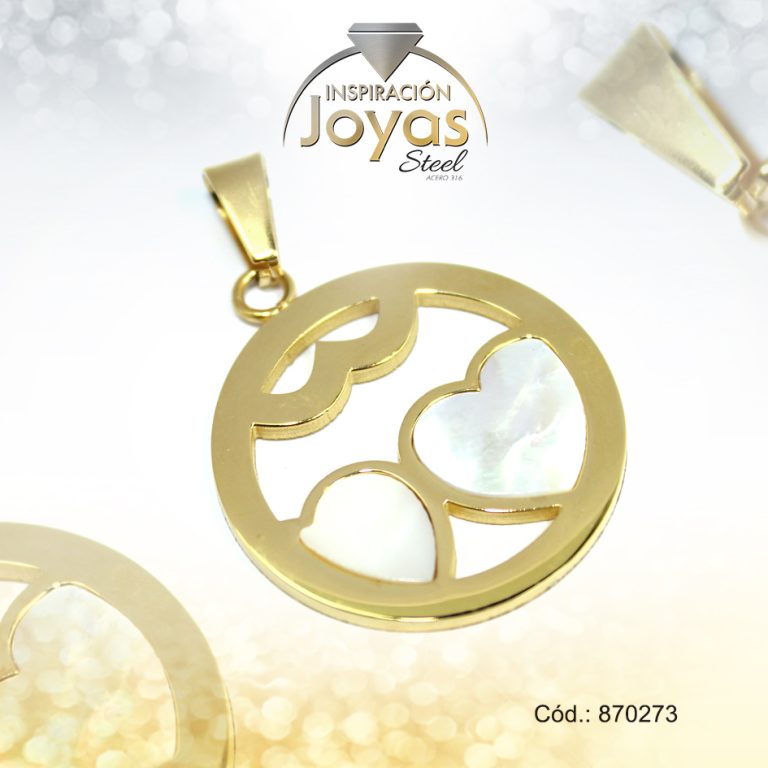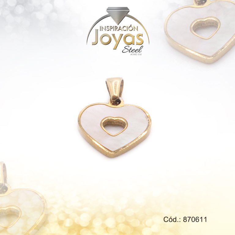 Dije de Acero Aleación Micro Circón Dorado Corazón – 870208
