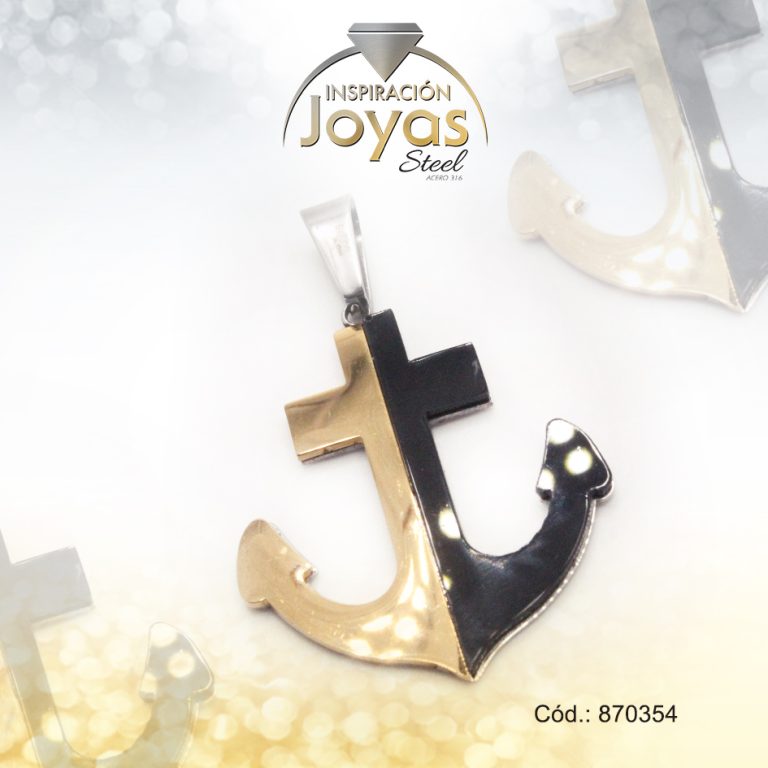 Dije de Acero Aleación Esmalte Plateado Dorado y Negro Ancla – 870354