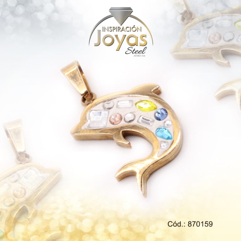 Dije de Acero Aleación Piedra Dorado Multi Color Delfín – 870159