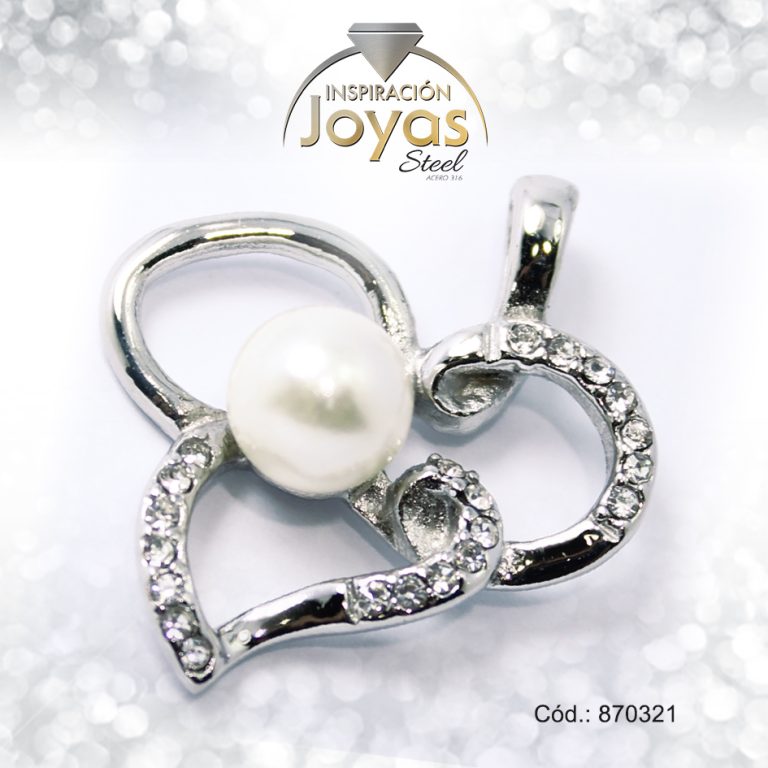 Dije de Acero Aleación Perla Plateado Corazón – 870321