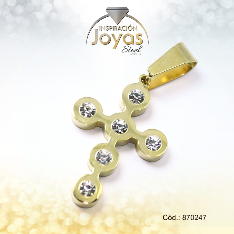Dije de Acero Religioso Circón Dorado Cruz Padre Nuestro – 870249