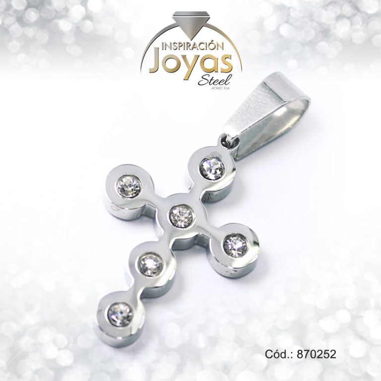Dije de Acero Religioso Circón Plateado Cruz – 870378