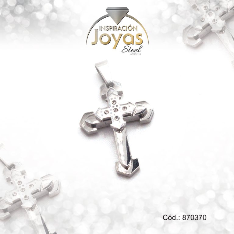 Dije de Acero Religioso Circón Plateado Cruz – 870367