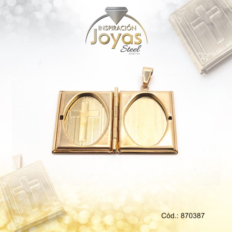 Dije de Acero Religioso Dorado Relicario Cruz – 870387