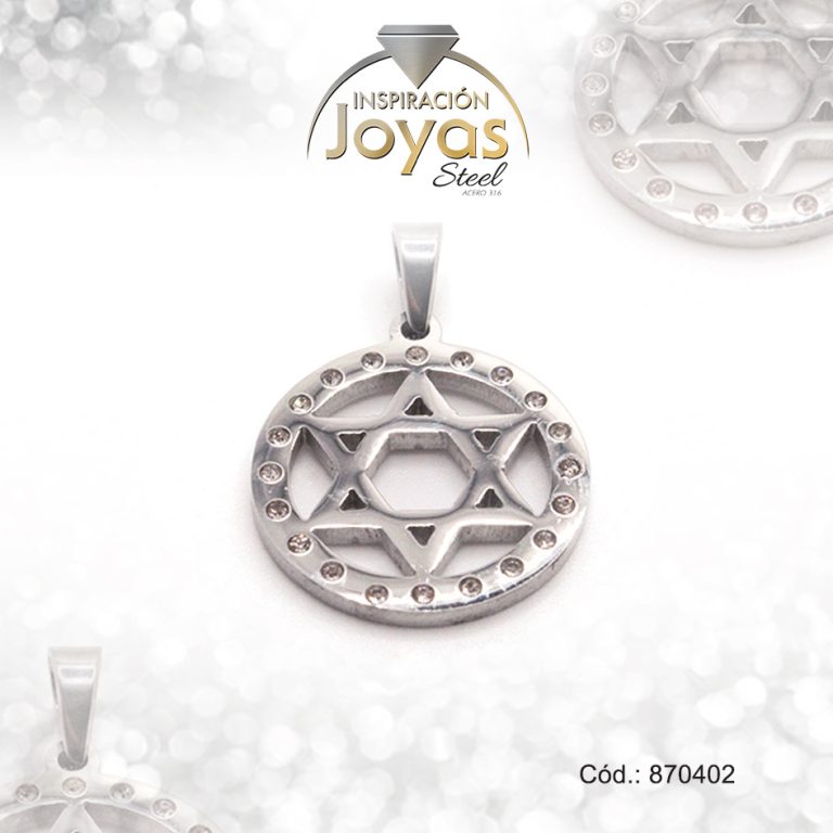 Dije de Acero Religioso Circón Plateado Estrella de David – 870402