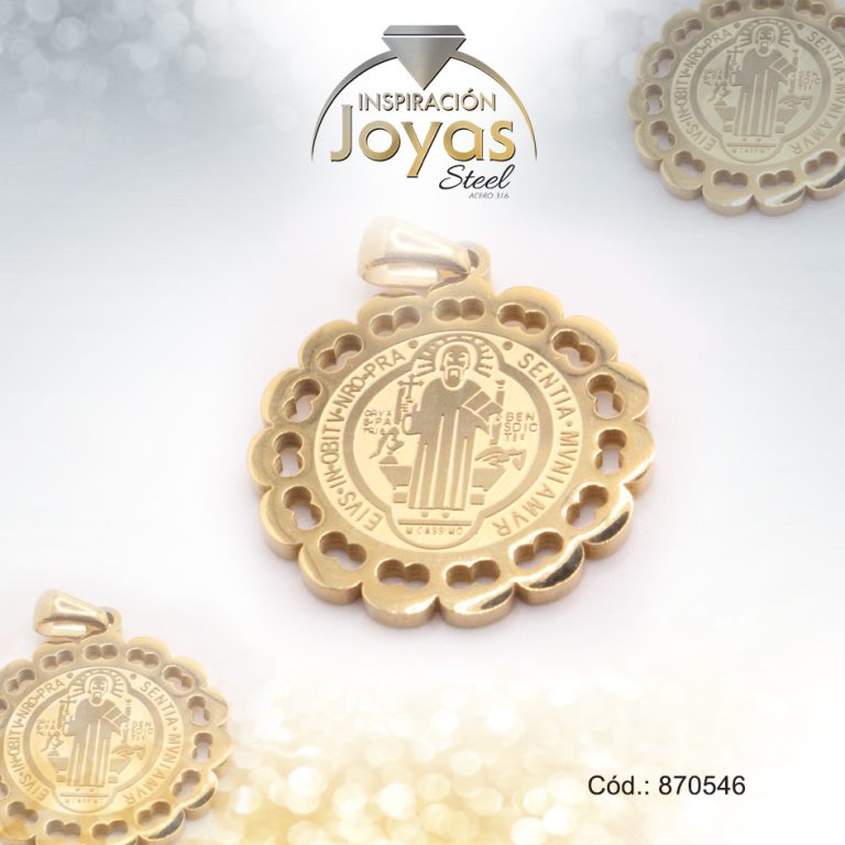 Dije de Acero Religioso Dorado Medalla San Benito – 870564