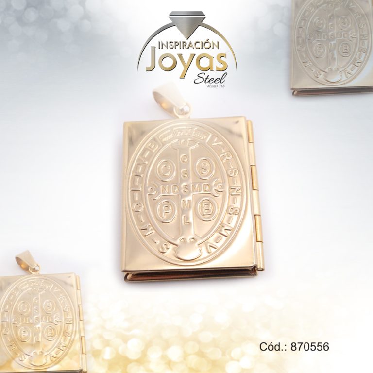 Dije de Acero Religioso Dorado Relicario San Benito – 870556