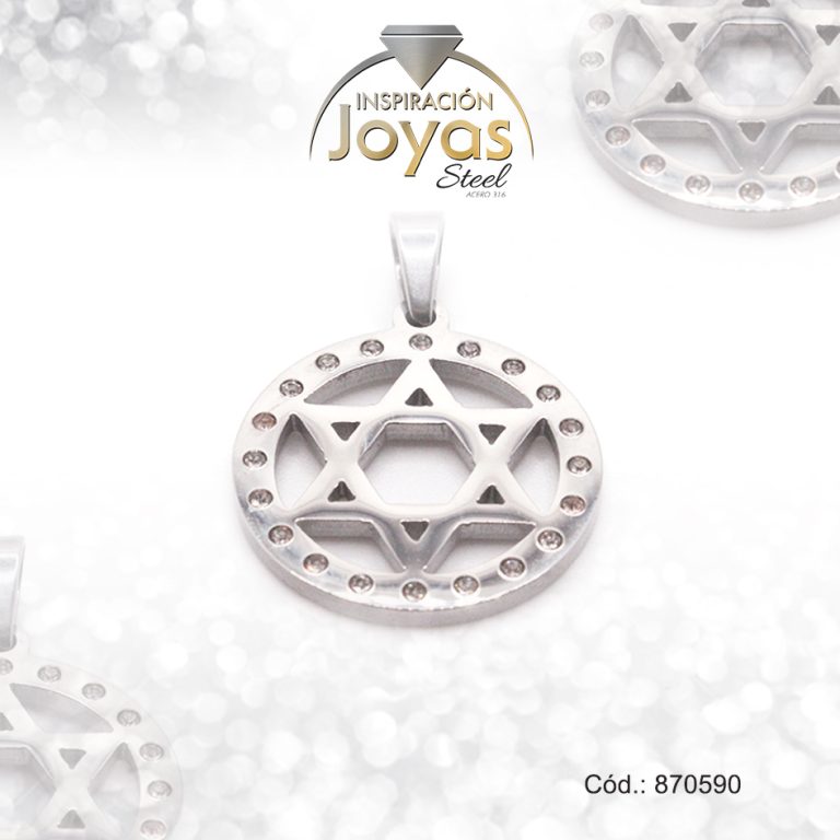 Dije de Acero Religioso Circón Plateado Estrella de David – 870590
