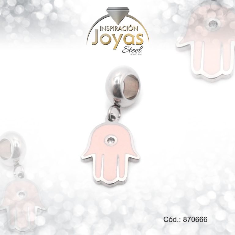 Dije de Acero Variado Esmalte Pandora Plateado Rosado Mano de Fátima – 870666
