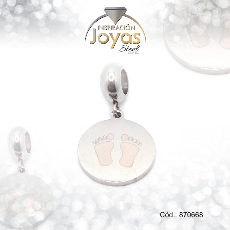 Dije de Acero Variado Esmalte Pandora Plateado Rosado Pies – 870668