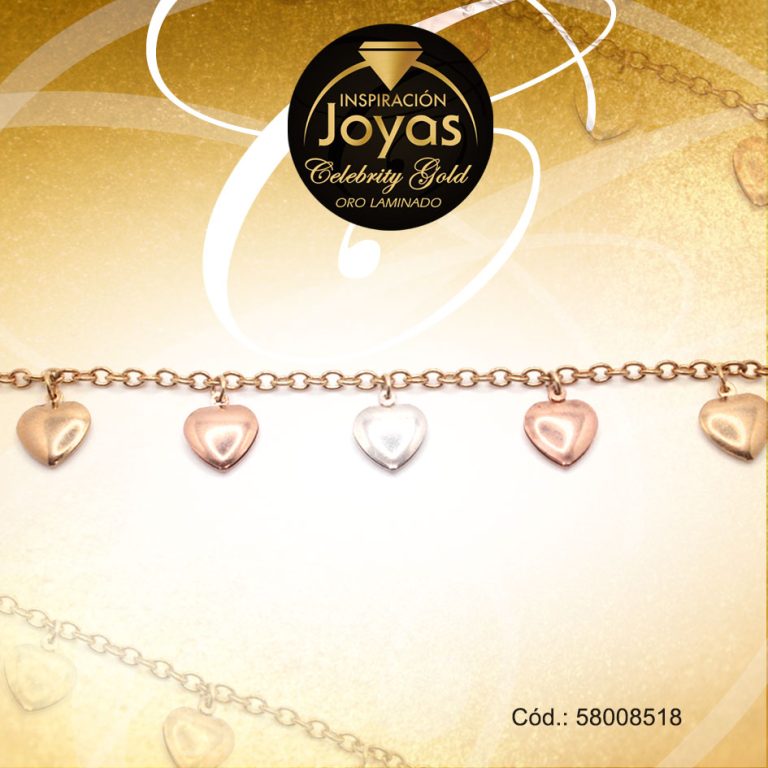Pulsera Celebrity Gold Variado Colgante 3 Tonos Corazón – 58011522