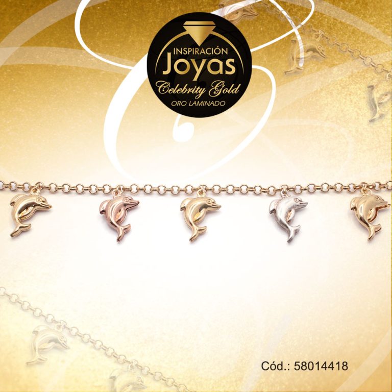 Pulsera Celebrity Gold Variado Colgante 3 Tonos Delfines – 58014318