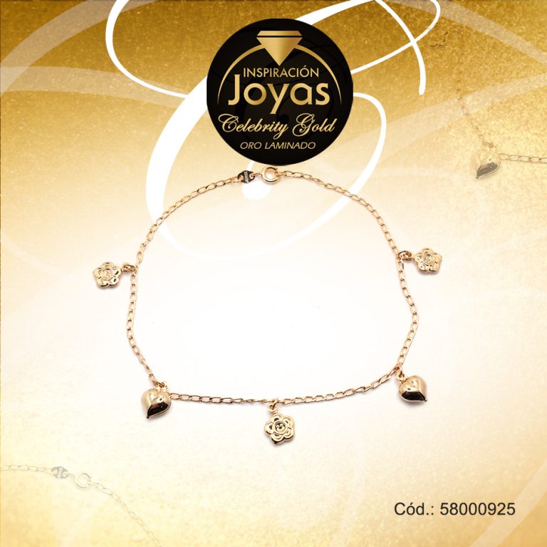 Pulsera Celebrity Gold Variado Colgante Dorado Flor, Corazón – 58000925