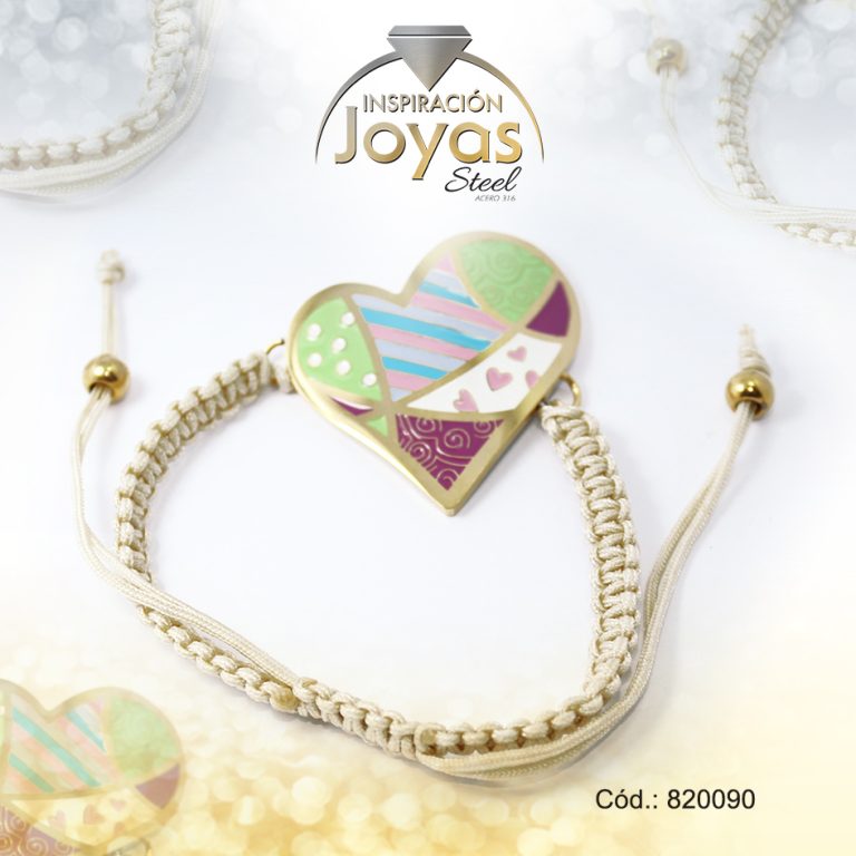 Pulsera de Acero Ajustable Hilo Beige Corazón Multi Color – 820090