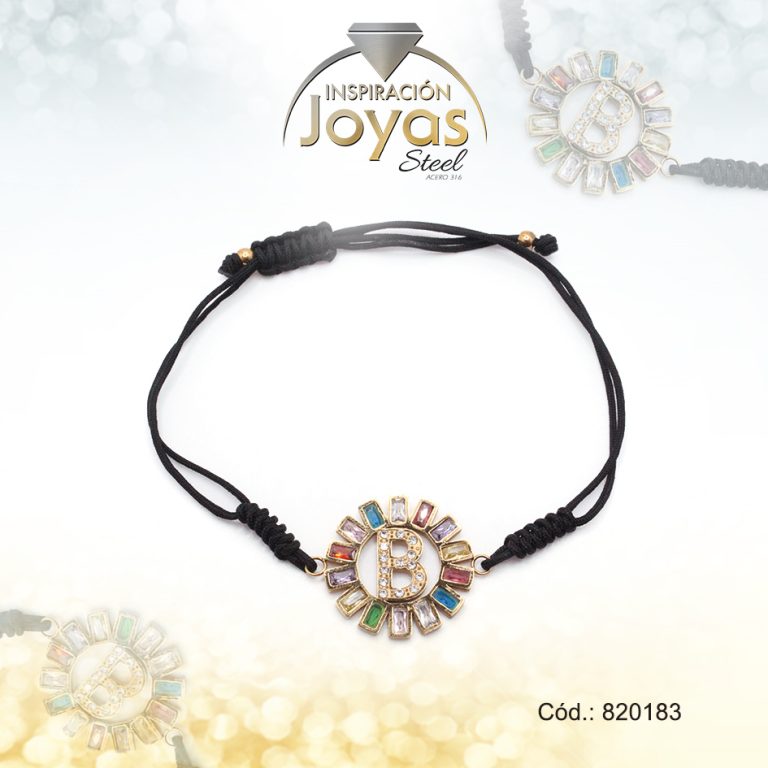 Pulsera de Acero Ajustable Hilo Negro Letra B Multi Color – 820183