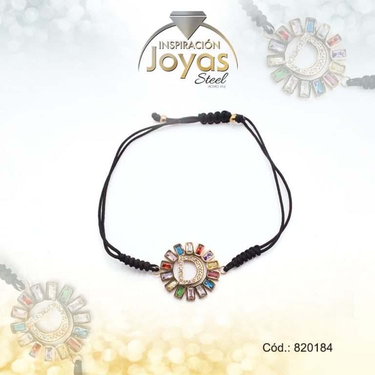 Pulsera de Acero Ajustable Hilo Negro Letra D Multi Color – 820184