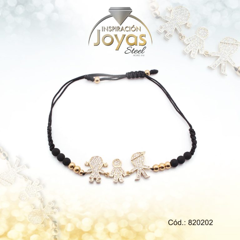 Pulsera de Acero Ajustable Hilo Negro Familia Dorado – 820202