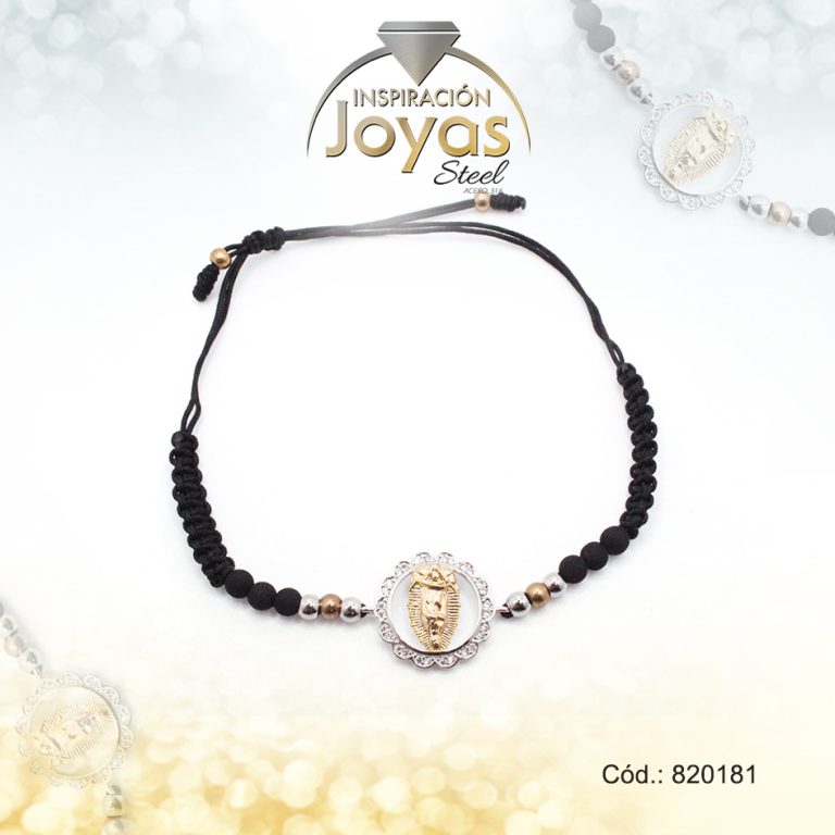 Pulsera de Acero Ajustable Hilo Negro Medalla Plateado – 820181