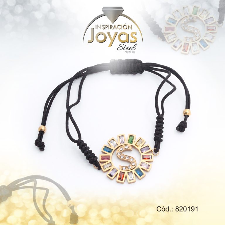 Pulsera de Acero Ajustable Hilo Negro Letra S Multi Color – 820191