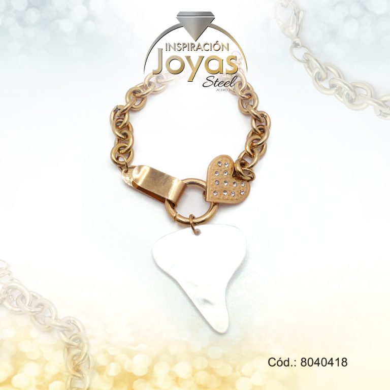 Pulsera de Acero Aleación Circón Dorado Corazón Medida 18 cm – 8040418