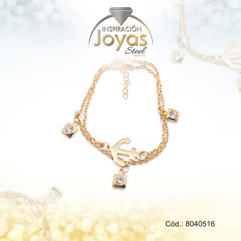 Pulsera de Acero Aleación Circón Dorado Cuadrado, Ancla Medida 16 cm – 8040516