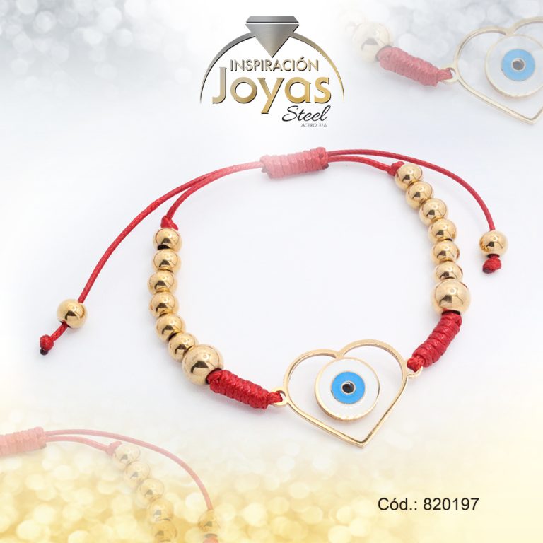 Pulsera de Acero Ajustable Hilo Rojo Ojo Turco Dorado – 820197