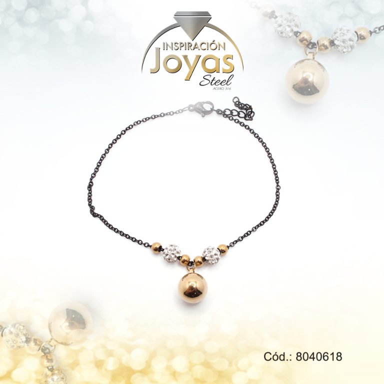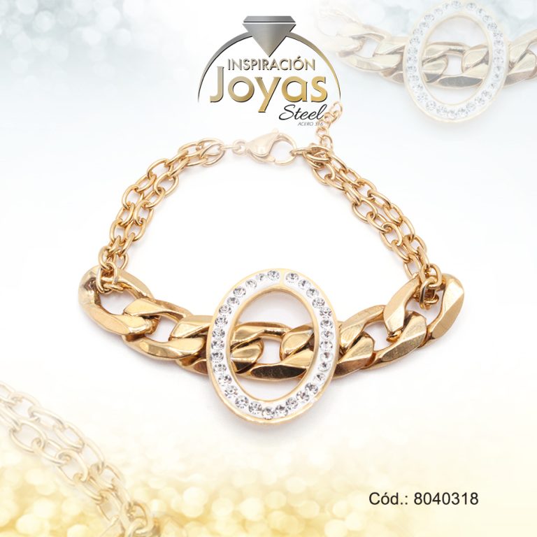 Pulsera de Acero Aleación Micro Circón Dorado Círculo Medida 18 cm – 8040318