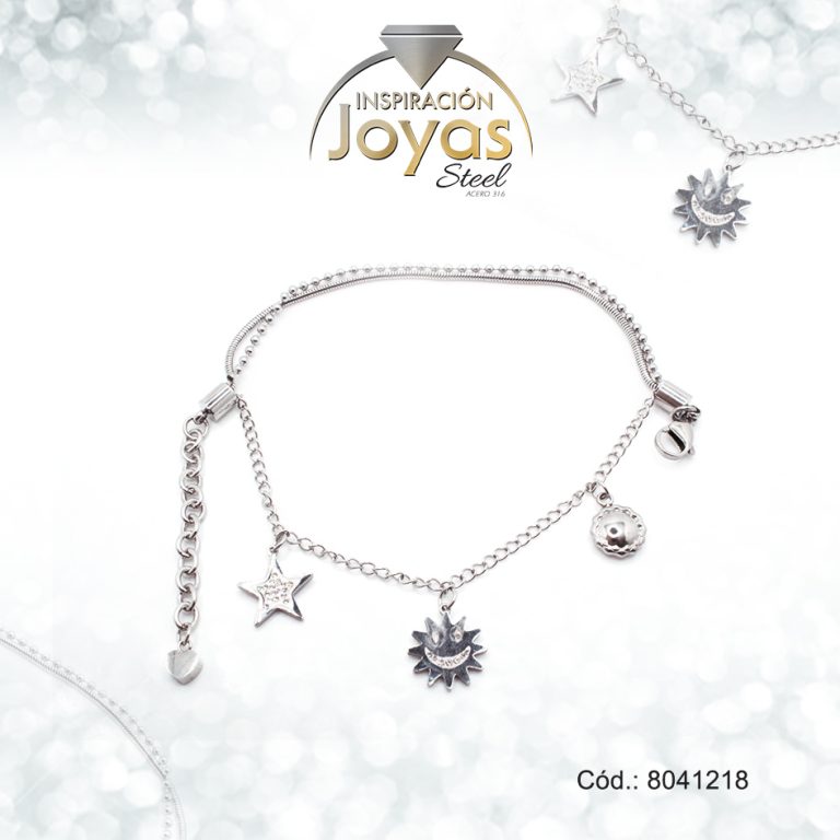 Pulsera de Acero Aleación Micro Circón Plateado Estrella, Sol Medida 18 cm – 8041218