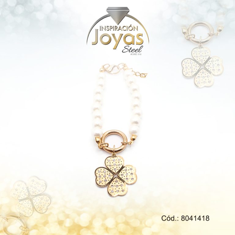 Pulsera de Acero Aleación Micro Circón Dorado Trébol Perla Medida 18 cm – 8041418