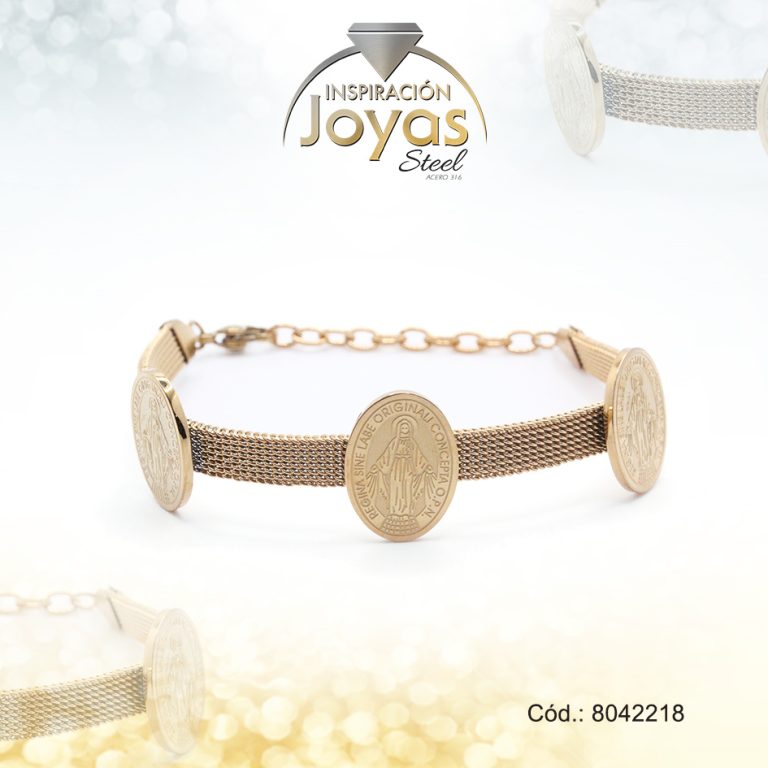 Pulsera de Acero Aleación Malla Dorado Virgen Nuestra Señora Milagrosa Medida 18 cm – 8042218