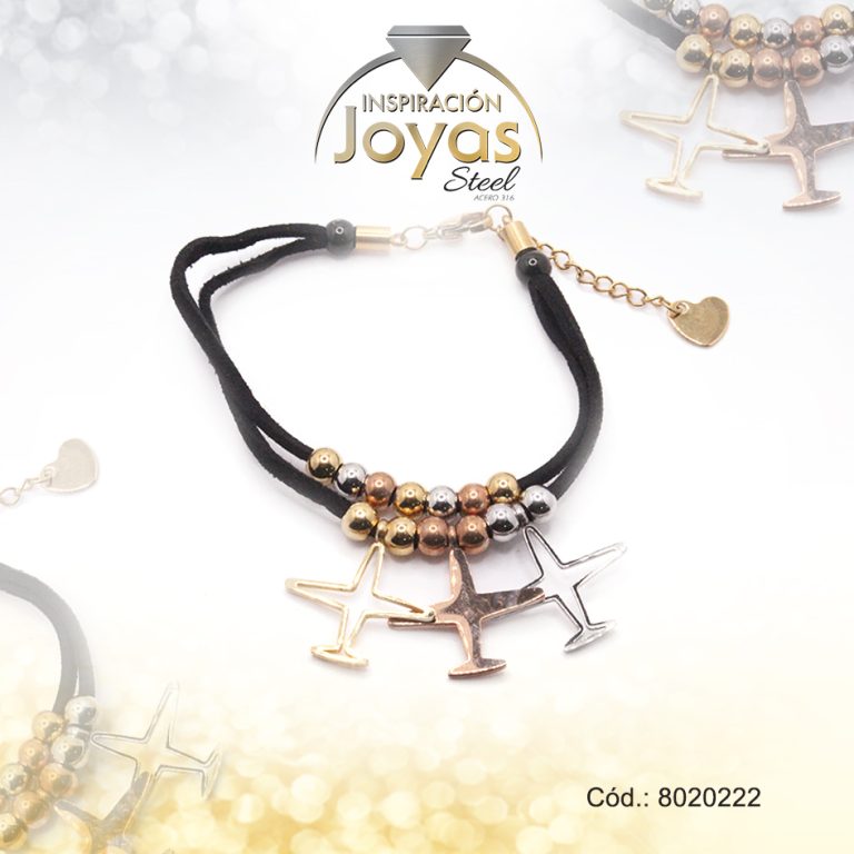 Pulsera de Acero Aleación Semi Cuero 3 Tonos Avión Negro Medida 22 cm – 8020222