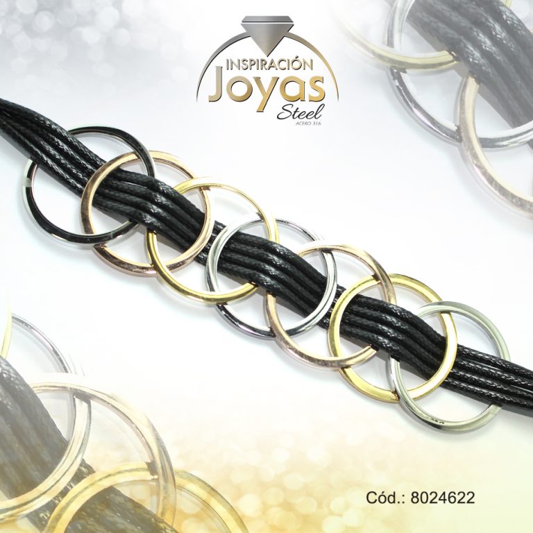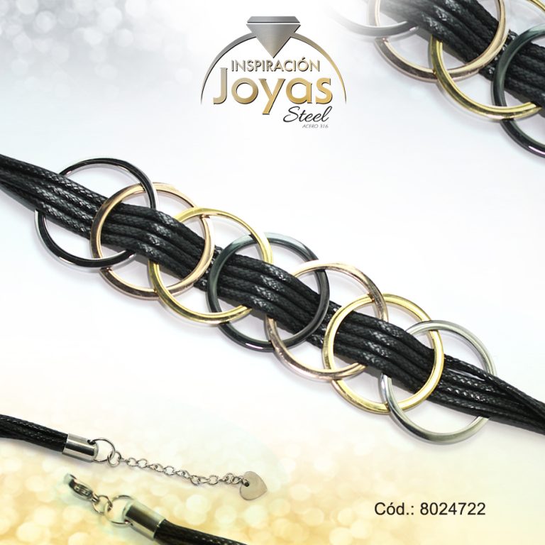 Pulsera de Acero Aleación Semi Cuero 3 Tonos Círculo Negro Medida 22 cm – 8024722