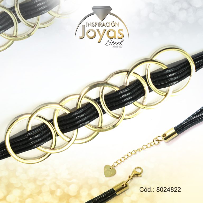 Pulsera de Acero Aleación Semi Cuero Dorado Círculo Negro Medida 22 cm – 8024822