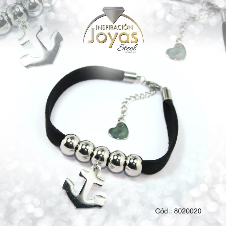 Pulsera de Acero Aleación Tela Plateado Ancla Negro Medida 20 cm – 8020020