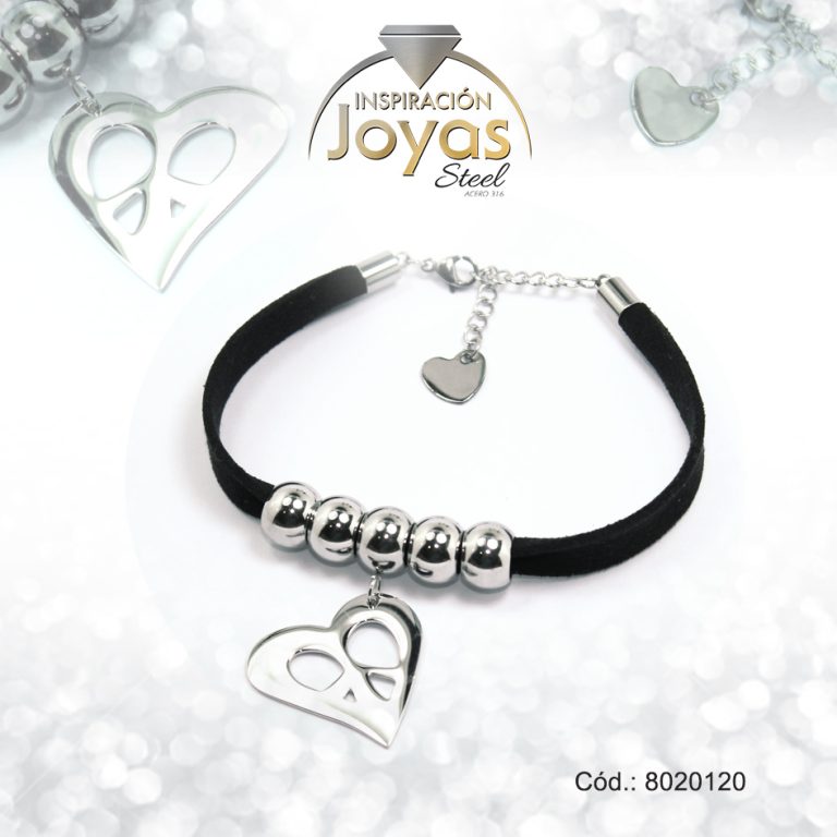Pulsera de Acero Aleación Tela Plateado Corazón Negro Medida 20 cm – 8020120