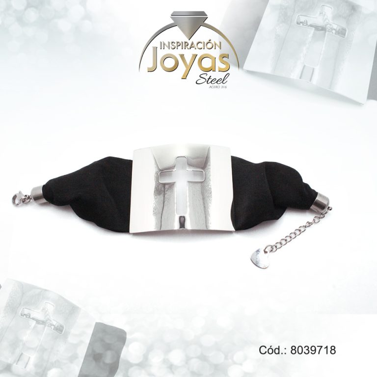 Pulsera de Acero Aleación Tela Plateado Cruz Negro Medida 18 cm – 8039718