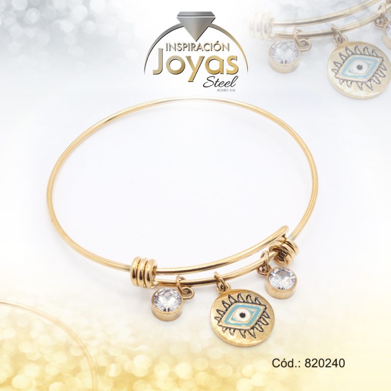 Pulsera de Acero Brazalete Circón Dorado Ojo Turco – 820240
