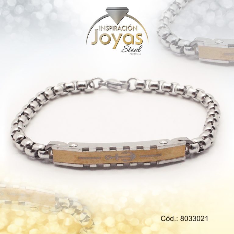 Pulsera de Acero Caballero 2 Tonos Con Placa Medida 21 cm – 8033021