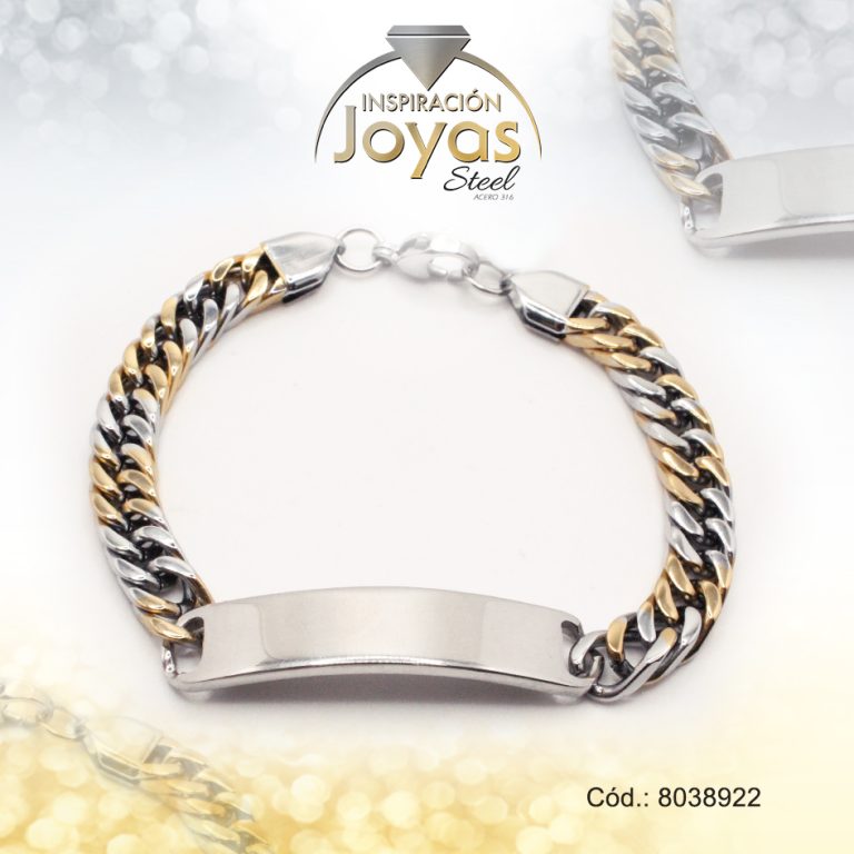 Pulsera de Acero Caballero 2 Tonos Con Placa Medida 22 cm – 8038922