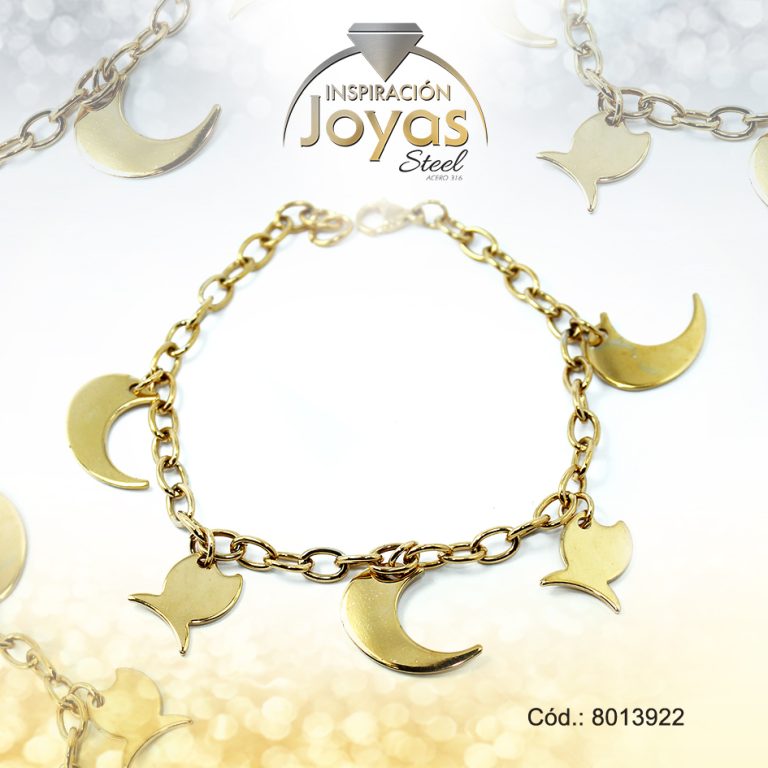 Pulsera de Acero Variado Dorado Luna, Pez Medida 22 cm – 8013922