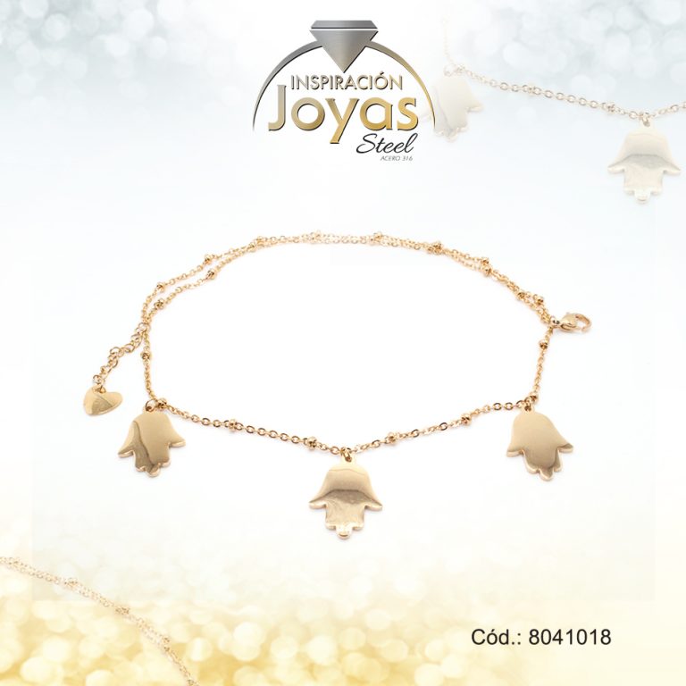 Pulsera de Acero Variado Dorado Mano de Fatima, Corazón, Virgen Medida 18 cm – 8042118