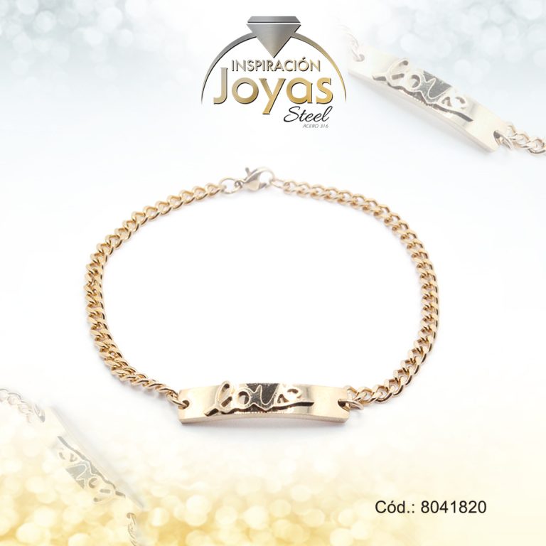 Pulsera de Acero Variado Dorado Placa Love Medida 20 cm – 8041820