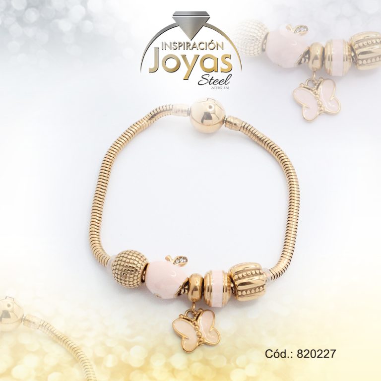 Pulsera de Acero Variado Esmalte Dorado Pandora Mariposa Blanco – 820227
