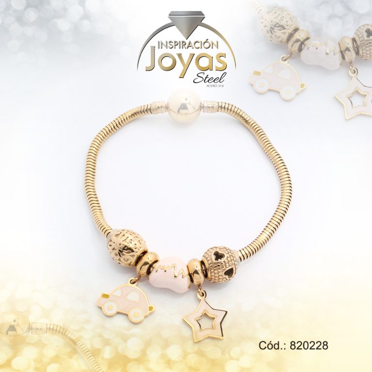 Pulsera de Acero Variado Esmalte Dorado Pandora Carro, Estrella Blanco – 820228