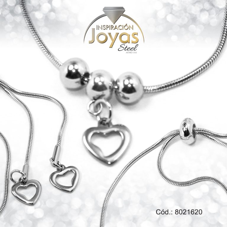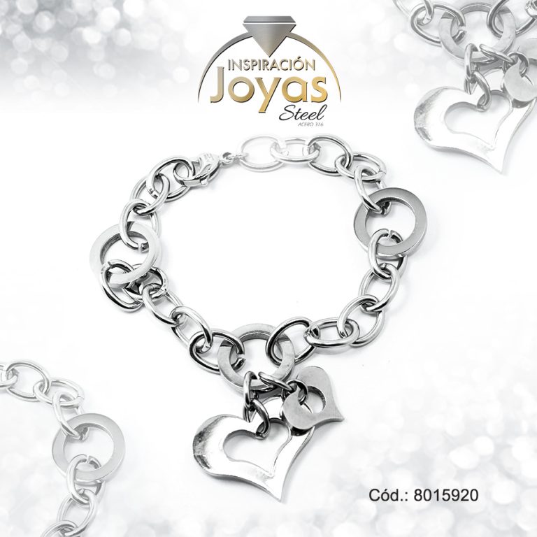 Pulsera de Acero Variado Plateado Corazón Medida 20 cm – 8021620