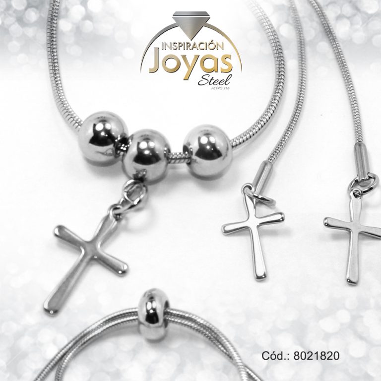 Pulsera de Acero Variado Plateado Cruz Medida 20 cm – 8021820