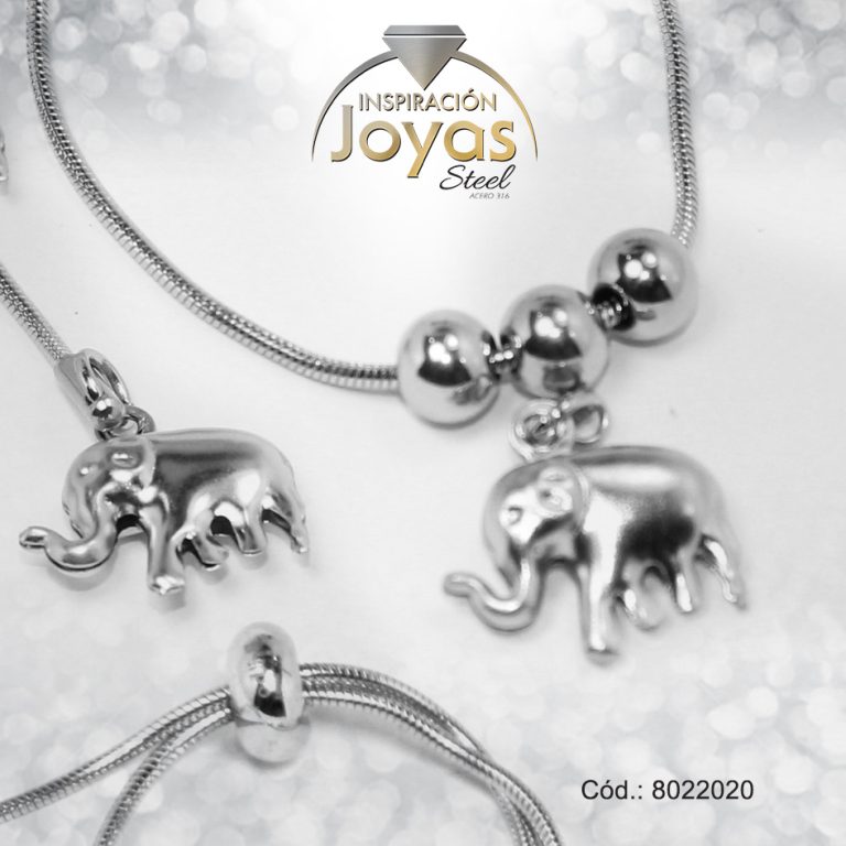 Pulsera de Acero Variado Plateado Elefante Medida 20 cm – 8022020