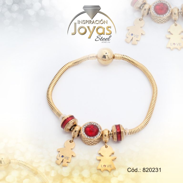 Pulsera de Acero Variado Piedra Dorado Pandora Niños Rojo – 820231