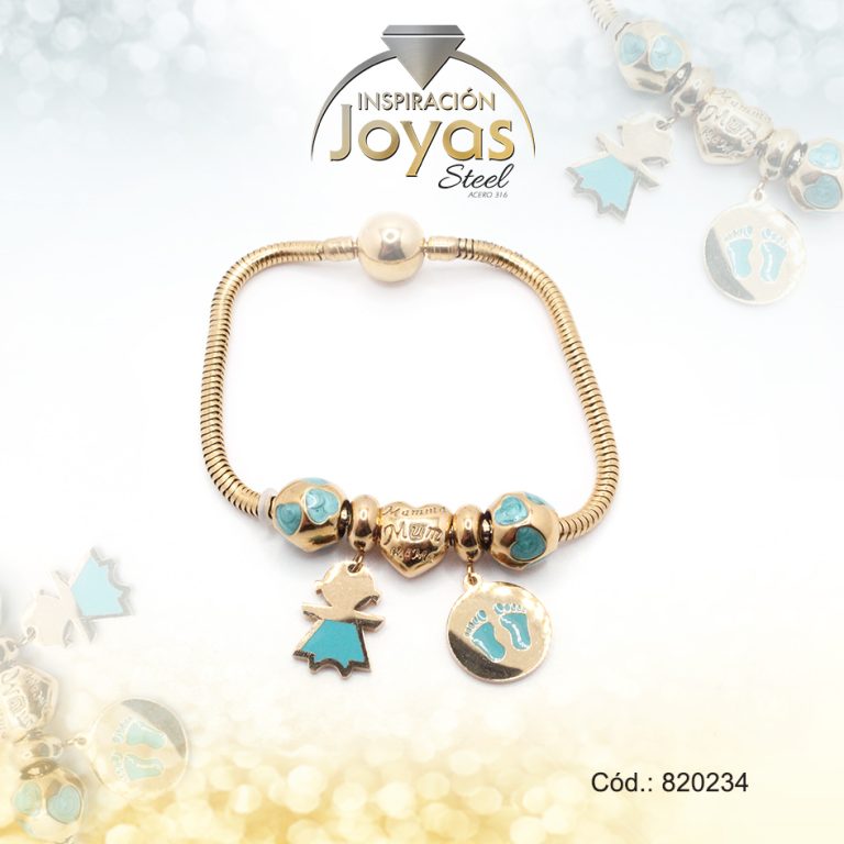 Pulsera de Acero Variado Piedra Dorado Pandora Corazón Azul – 820230