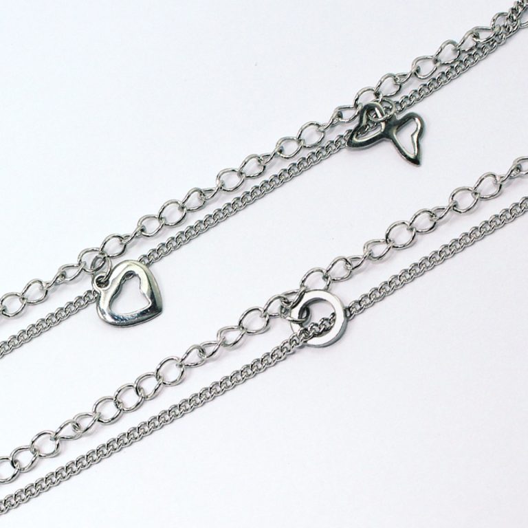 Tobillera de Acero Colgante Plateado Corazón, Mariposa, Círculo Medida 27 cm – 8026727